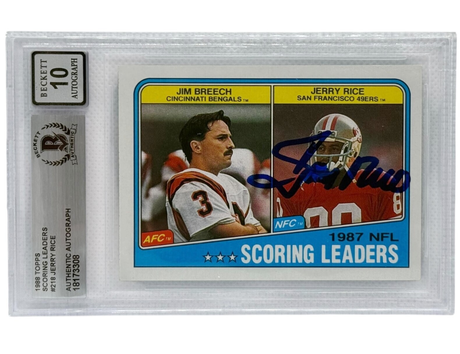 Jerry Rice Autographed 1988 Topps Scoring Leaders #218 Beckett Authenticated