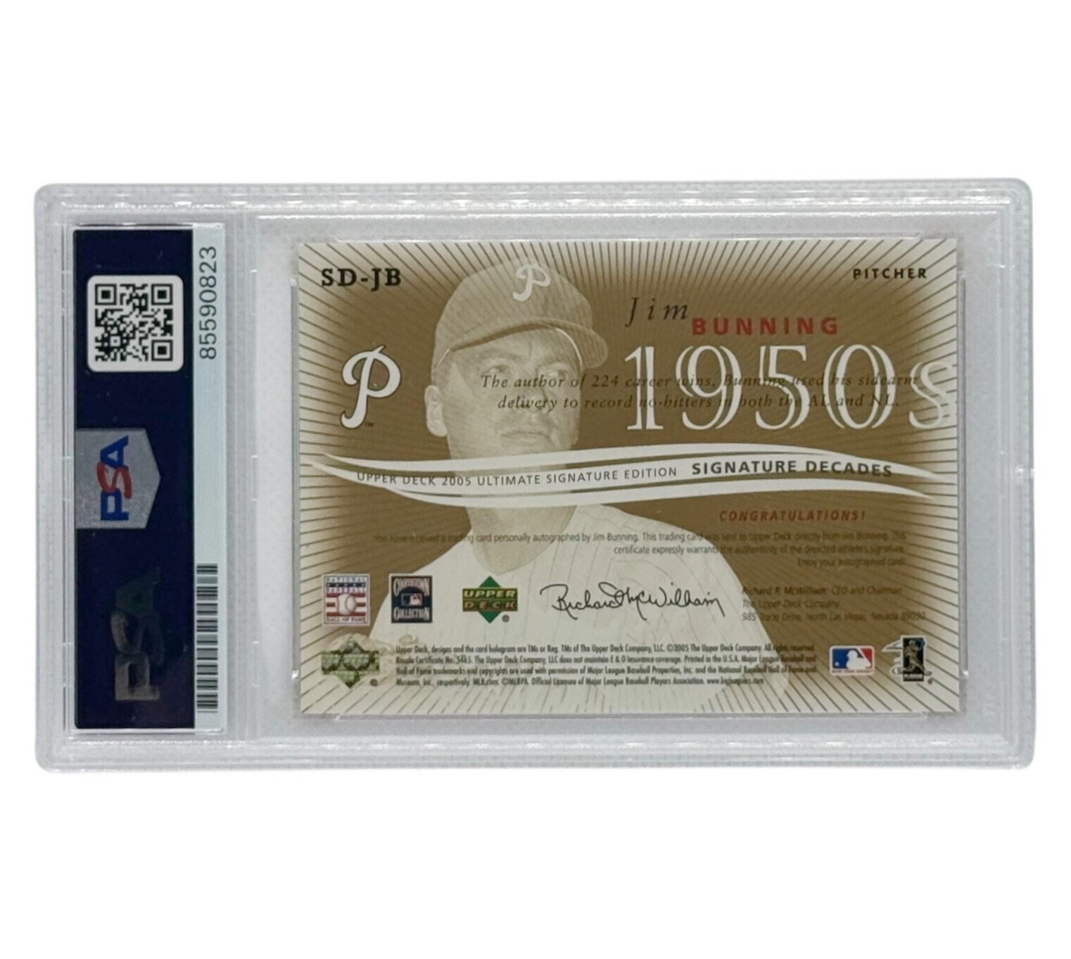 Jim Bunning Autographed 2005 Upper Deck Ultimate Signatures PSA Authenticated