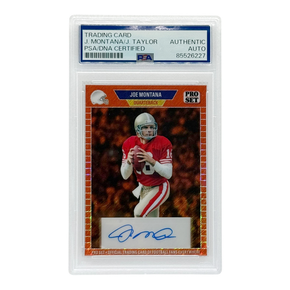 Joe Montana & John Taylor 2024 Autographed Leaf Red Pro Set Card PSA Authenticated