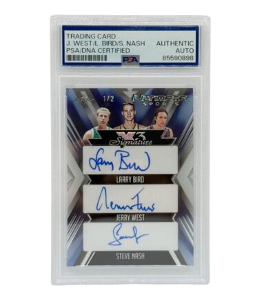Larry Bird Jerry West Steve Nash Autographed 2024 Leaf x3 Signatures PSA Authenticated