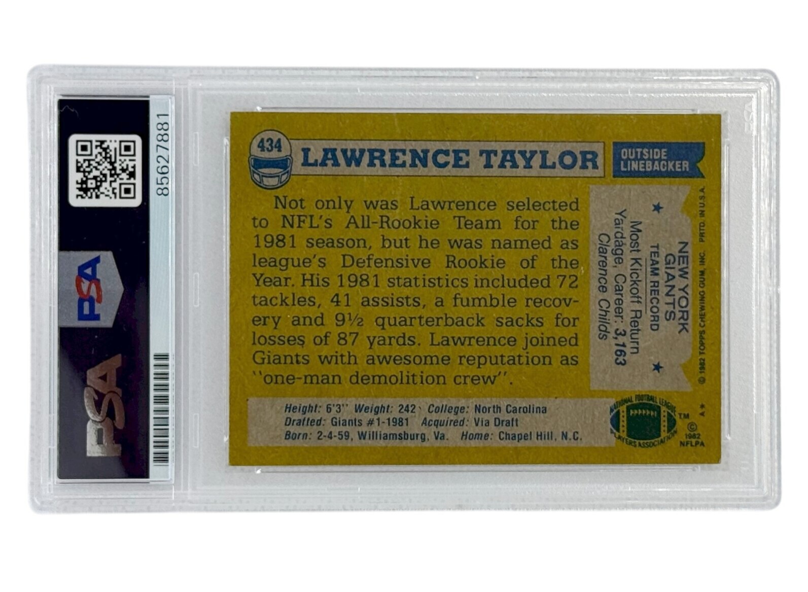 Lawrence Taylor Autographed 1982 Topps Rookie Card #434 PSA Authenticated