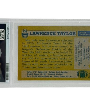 Lawrence Taylor Autographed 1982 Topps Rookie Card #434 PSA Authenticated