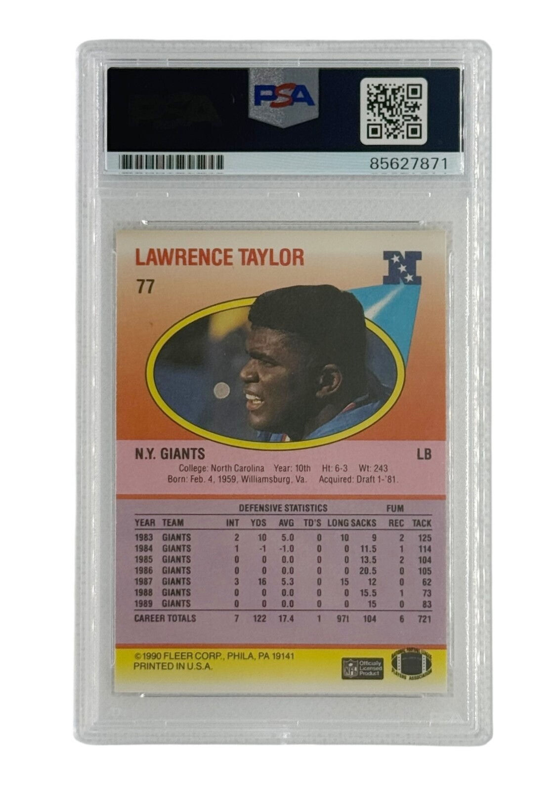 Lawrence Taylor Autographed 1990 Fleer #77 PSA Authenticated