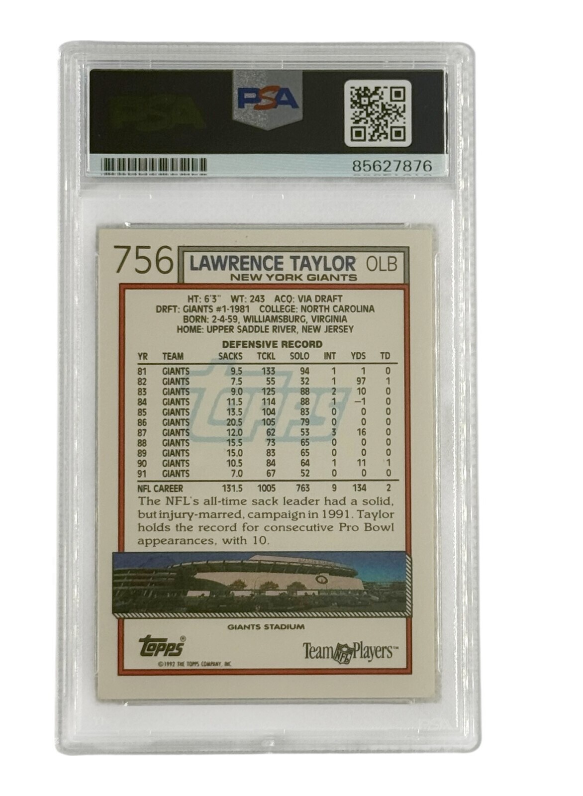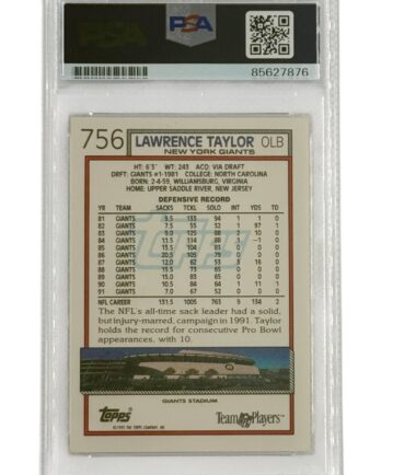 Lawrence Taylor Autographed 1992 Topps #756 PSA Authenticated