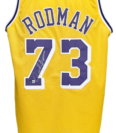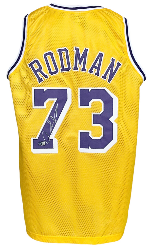 Los Angeles Lakers Dennis Rodman Autographed Pro Style Yellow Jersey BAS Authenticated