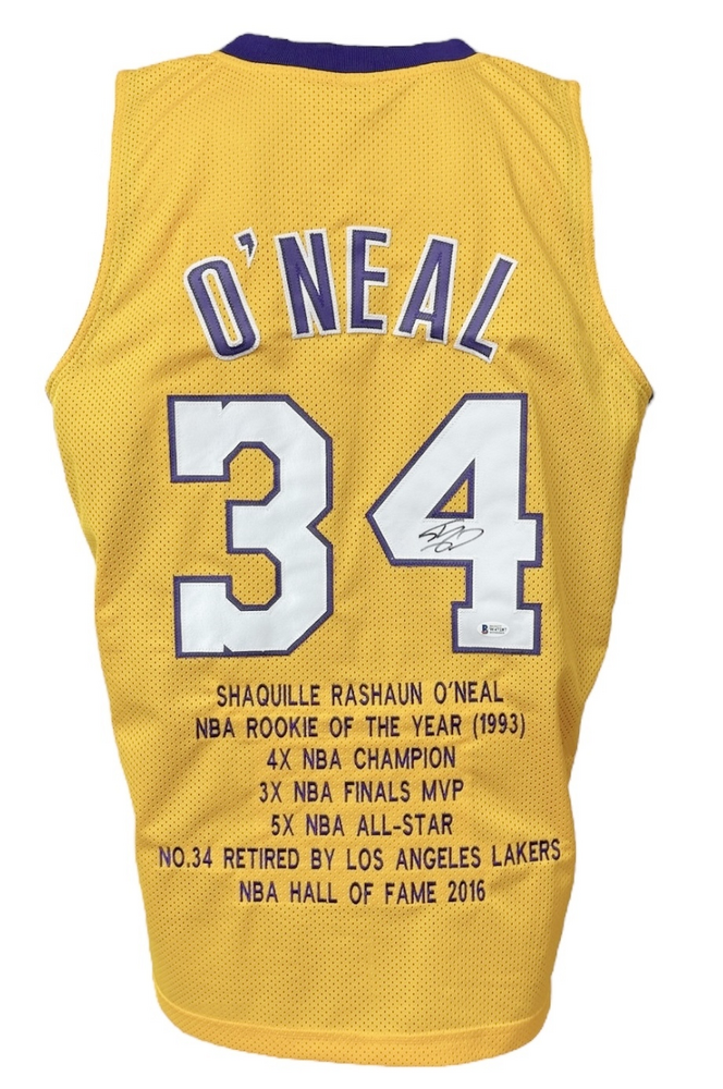 Los Angeles Lakers Shaquille O’Neal Autographed Pro Style Yellow Stat Jersey BAS Authenticated