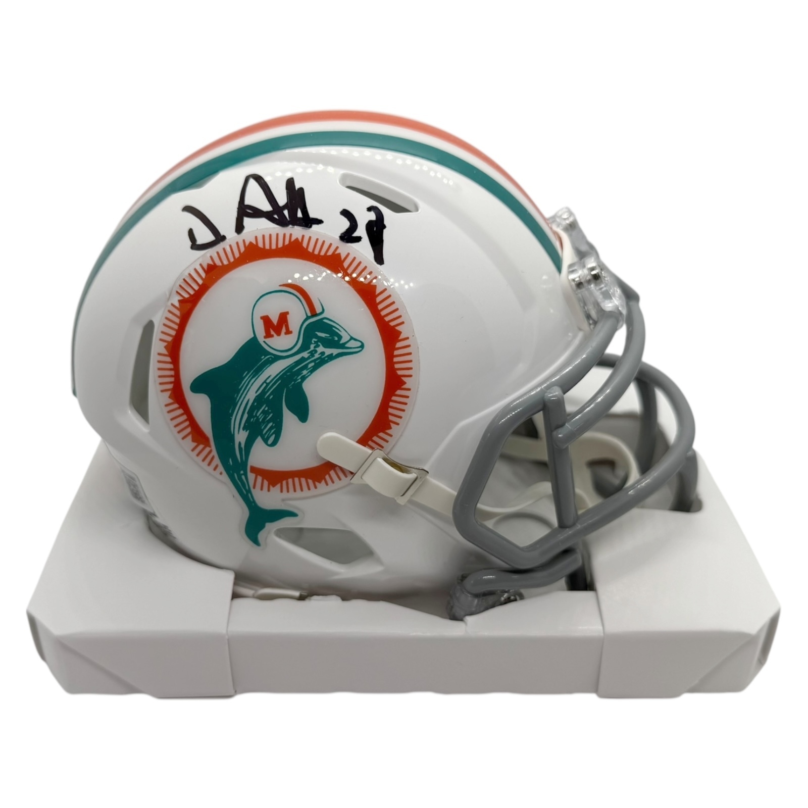 Miami Dolphins De’Von Achane Autographed Speed Mini Helmet BECKETT Authenticated