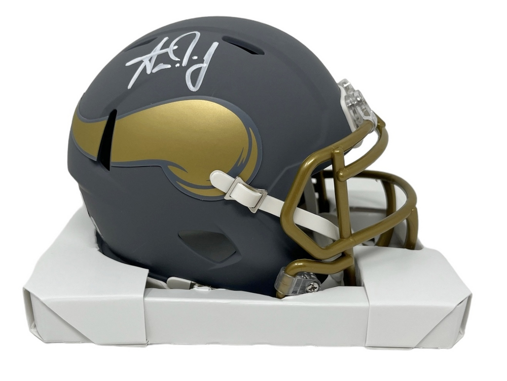 Minnesota Vikings Aaron Jones Signed Slate Speed Mini Helmet BAS Authenticated