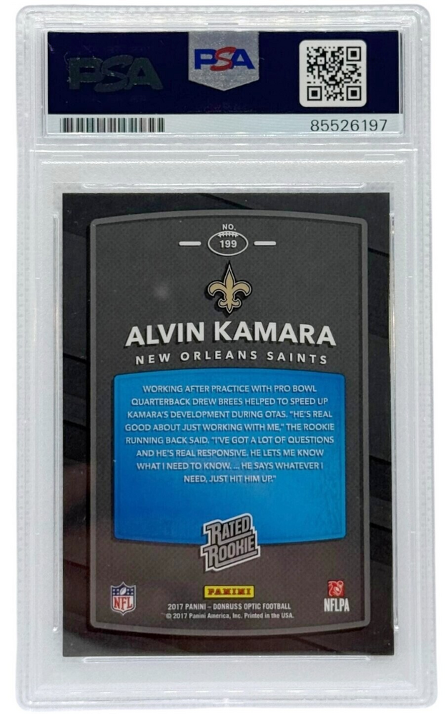 New Orleans Saints Alvin Kamara 2017 Donruss Optic Rookie Card #199 PSA Authenticated