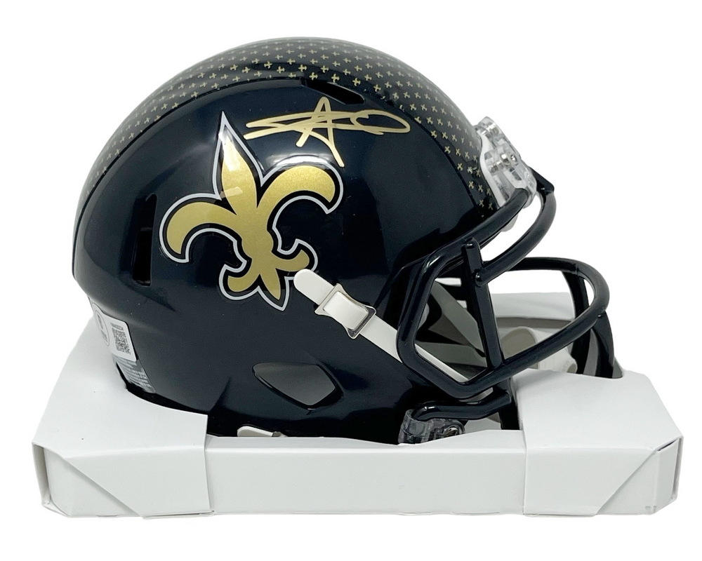 New Orleans Saints Alvin Kamara Autographed Alt. Black Speed Mini Helmet BAS Authenticated