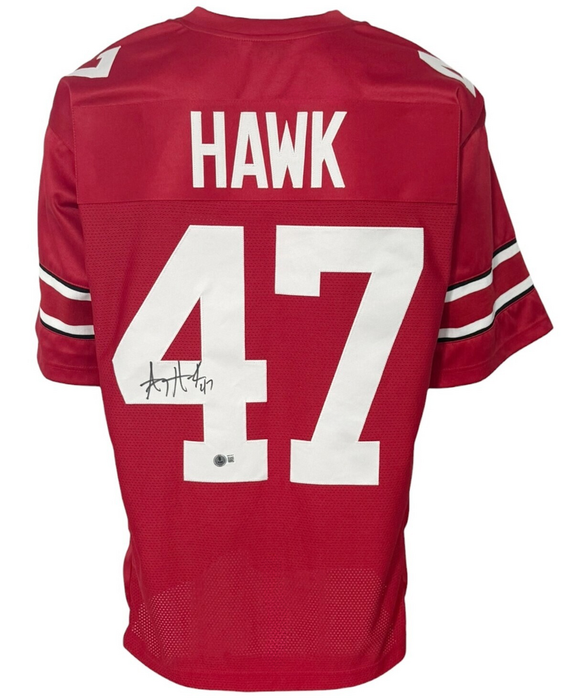 Ohio State Buckeyes A.J. Hawk Autographed College Style Red Jersey BAS Authenticated