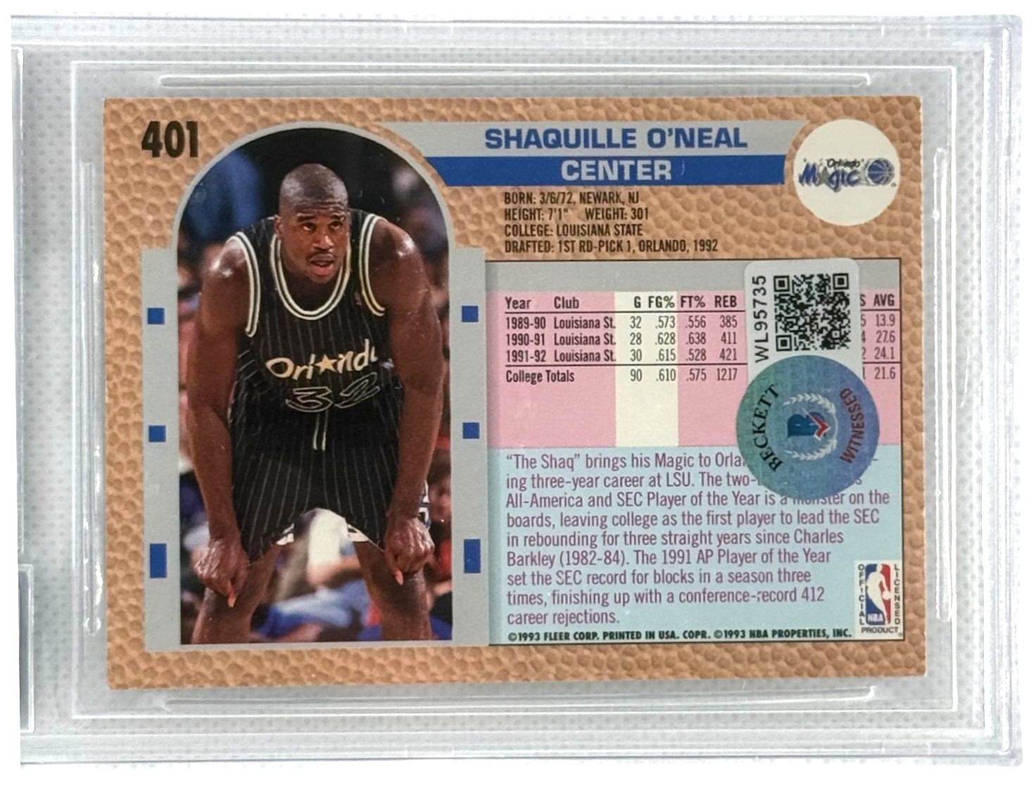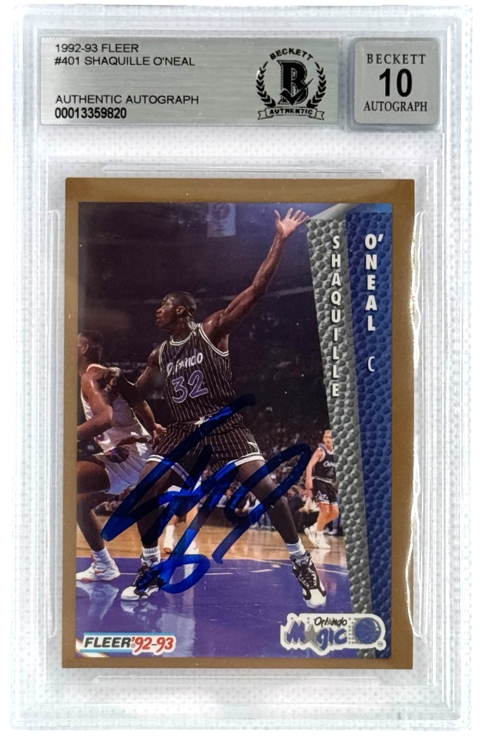 Orlando Magic Shaquille O’Neal 1992-93 Fleer #401 Autographed RC BAS Beckett Authentic