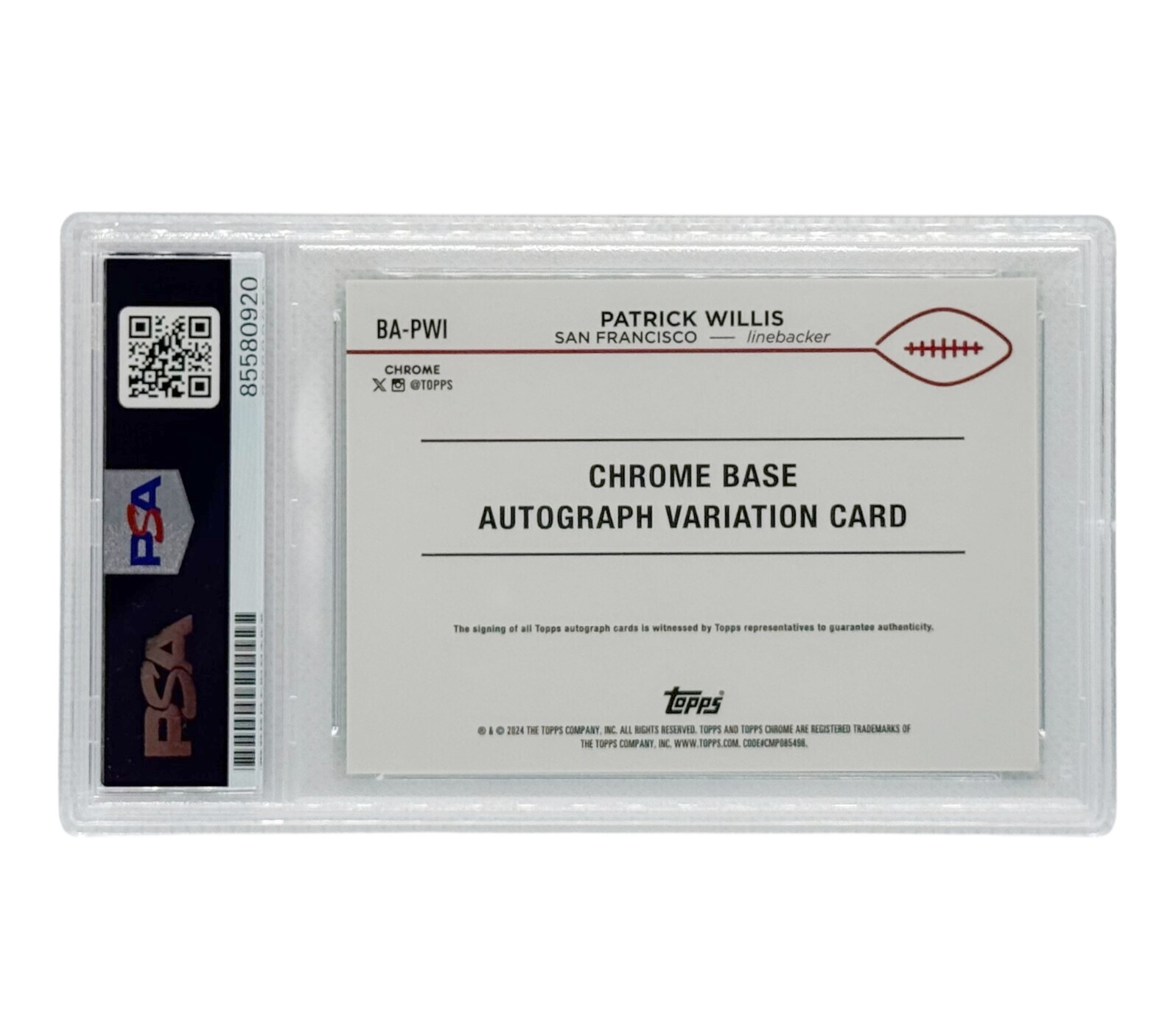Patrick Willis Autographed 2024 Topps Chrome Variation PSA Authenticated