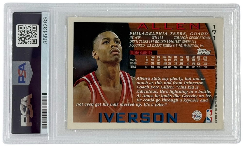 Philadelphia 76ers Allen Iverson 96-97 Topps Rookie Card #171 PSA Authenticated