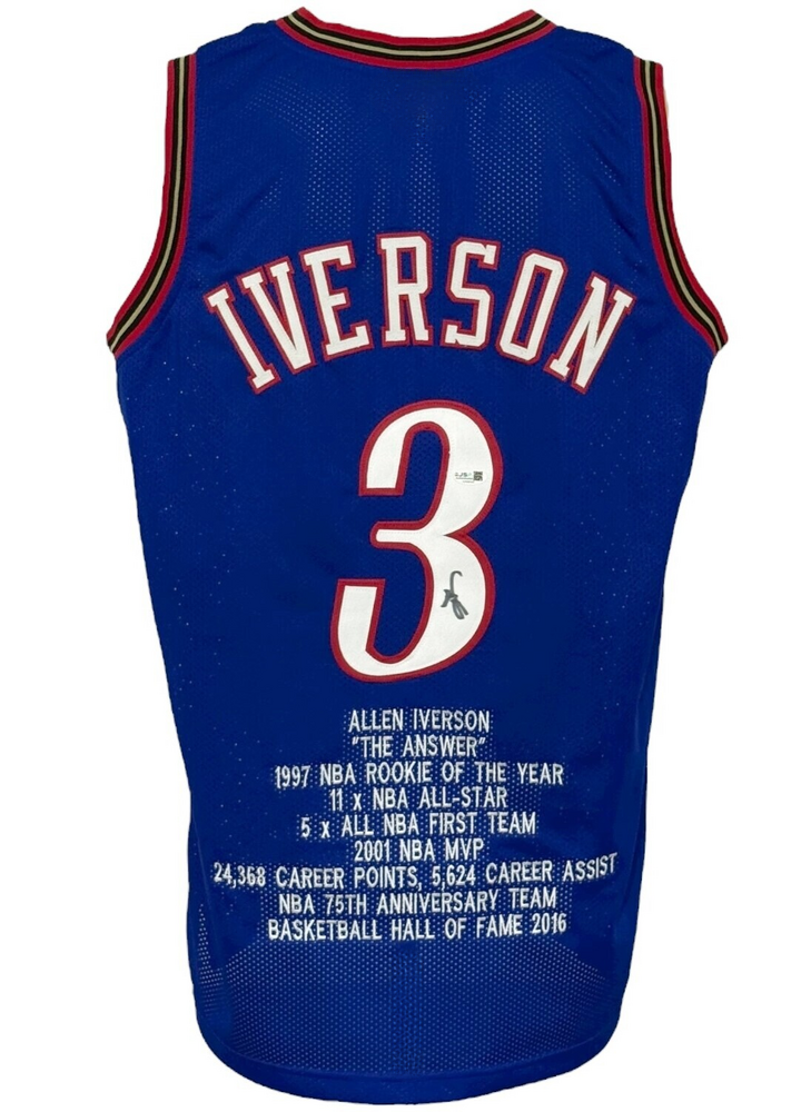 Philadelphia 76ers Allen Iverson Autographed Pro Style Blue Stat Jersey JSA Authenticated