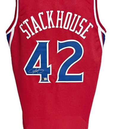 Philadelphia 76ers Jerry Stackhouse Autographed Pro Style Red Jersey BAS Authenticated