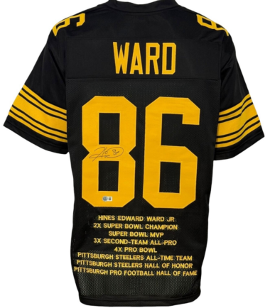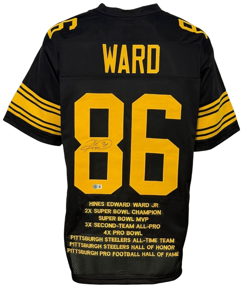 Pittsburgh Steelers Hines Ward Autographed Pro Style Black Color Rush Stat Jersey BAS Authenticated