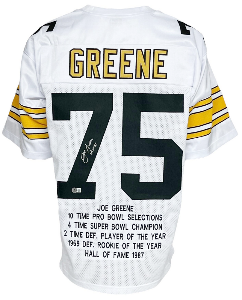Pittsburgh Steelers Joe Greene Autographed Pro Style White Stat Jersey BECKETT Authenticated