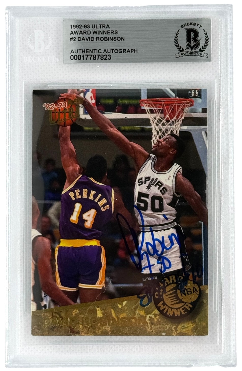 San Antonio Spurs David Robinson Autographed 92-93 Ultra Award Winners Card #2 Beckett COA