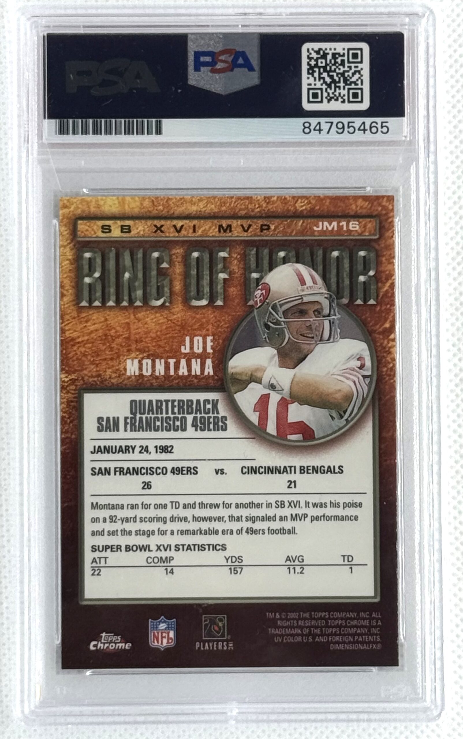 San Francisco 49ers Joe Montana Autographed 2002 Topps Chrome Ring of Honor #JM-16 PSA/DNA