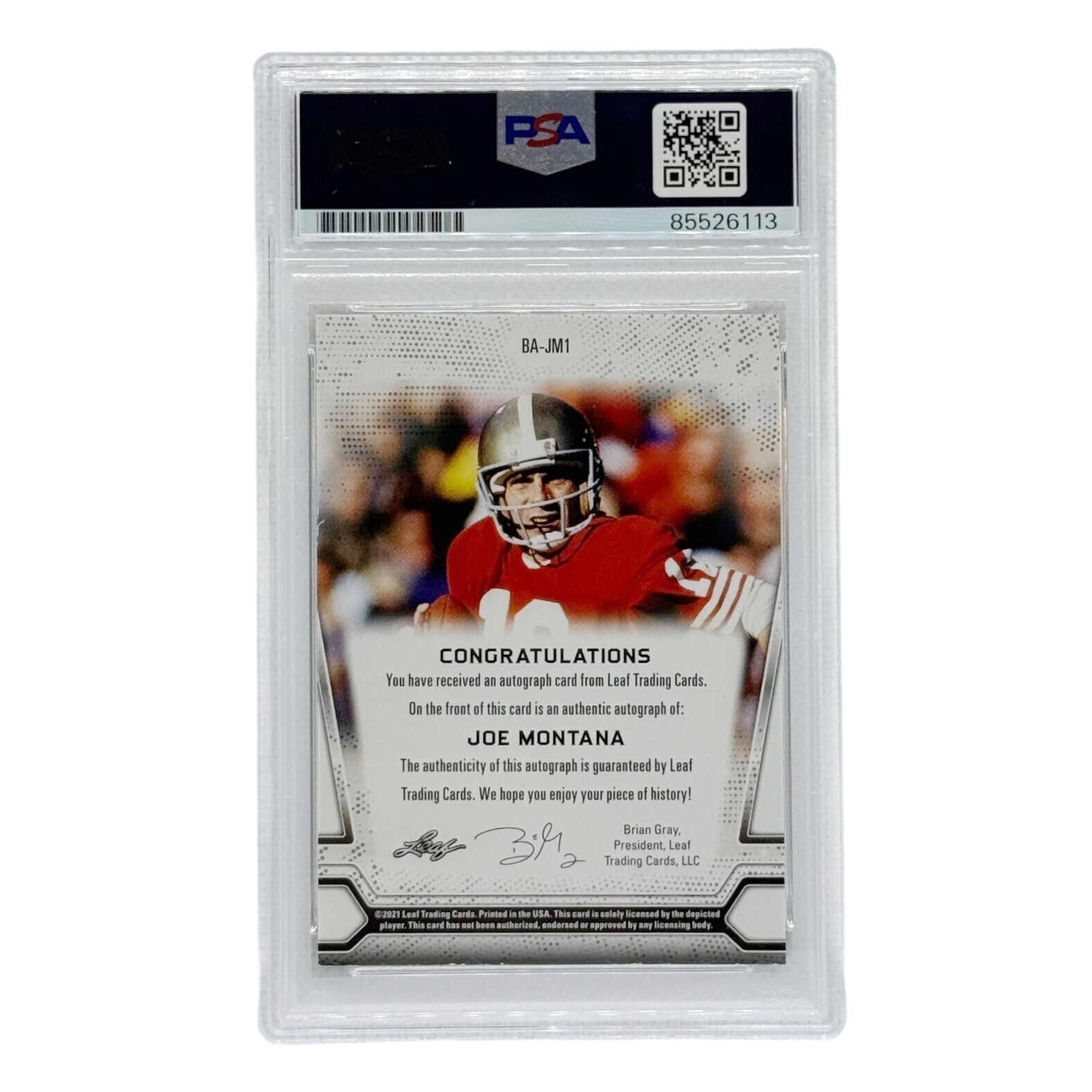 San Francisco 49ers Joe Montana Autographed 2021 Leaf Card PSA Authenticated