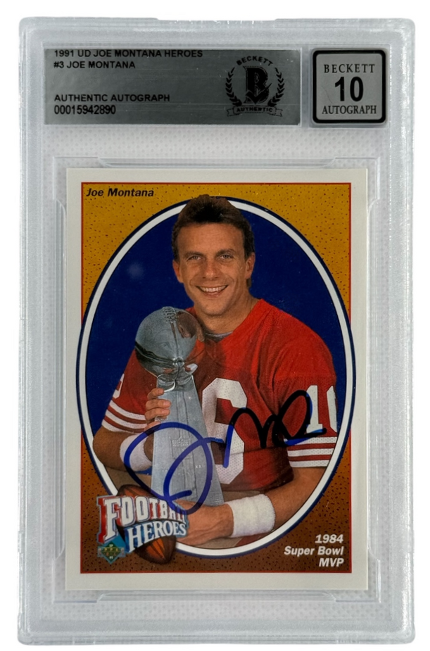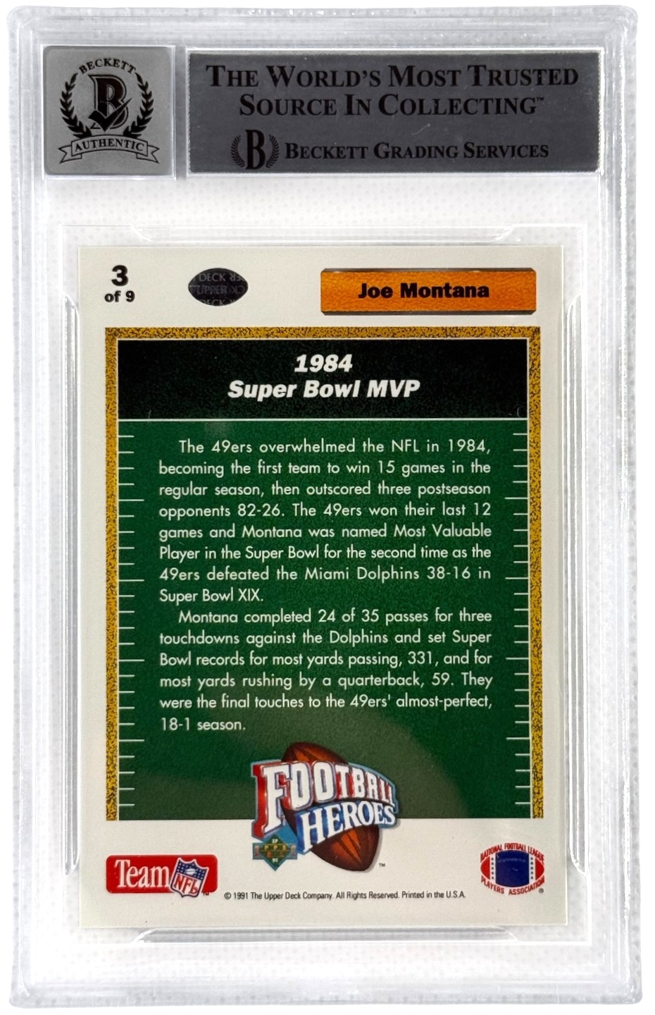 San Francisco 49ers Joe Montana Autographed 91 Upper Deck Heroes #3 Beckett