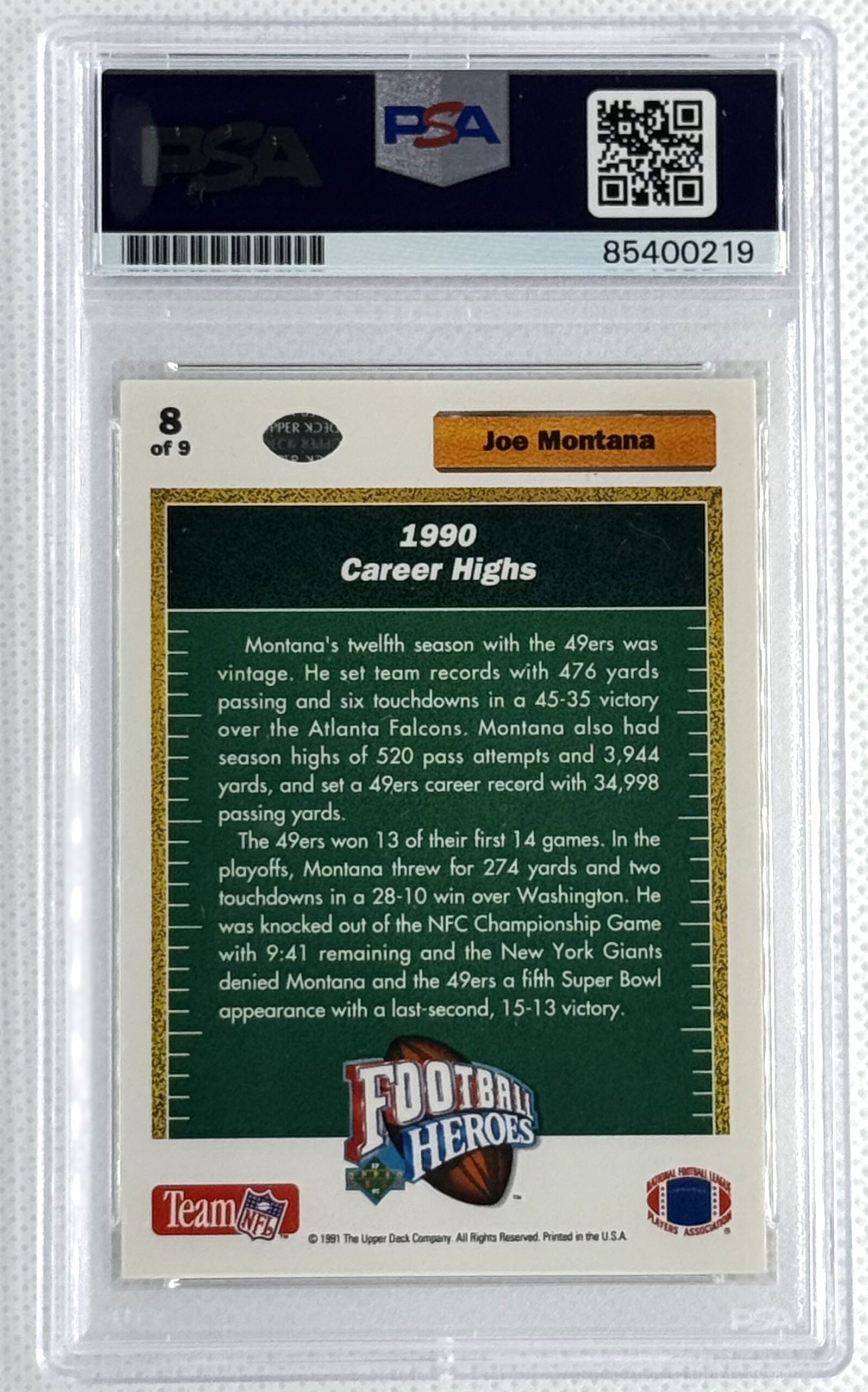 San Francisco 49ers Joe Montana Autographed 91 Upper Deck Heroes #8 PSA/DNA