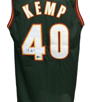Seattle Supersonics Shawn Kemp Autographed Pro Style Dark Green Jersey BAS Authenticated