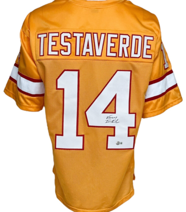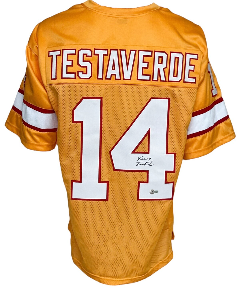 Tampa Bay Buccaneers Vinny Testaverde Autographed Pro Style Orange Jersey BAS Authenticated