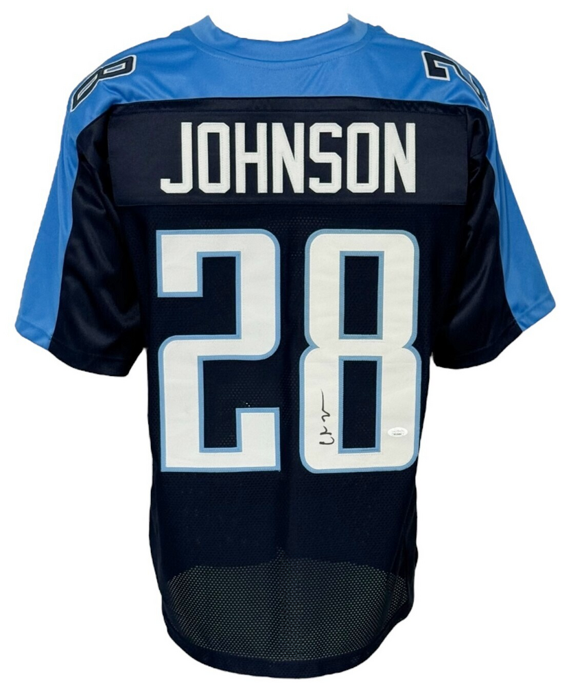 Tennessee Titans Chris Johnson Autographed Pro Style Navy Blue Custom Jersey JSA Authenticated