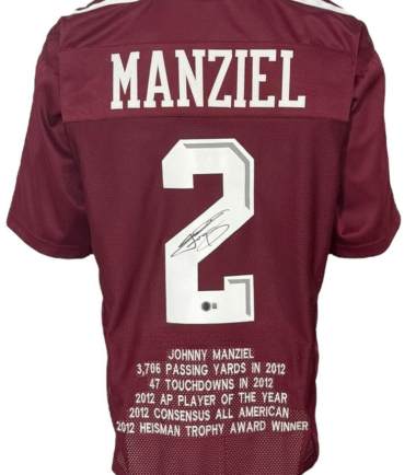Texas A&M Johnny Manziel Autographed College Style Burgundy Stat Jersey BAS Authenticated