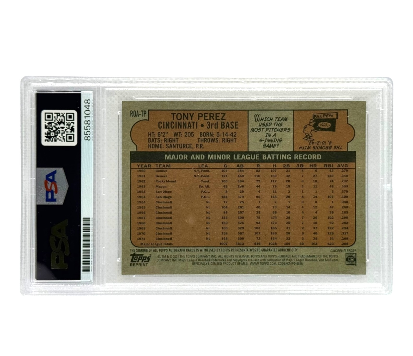 Tony Perez Autographed 2021 Topps Heritage PSA Authenticated